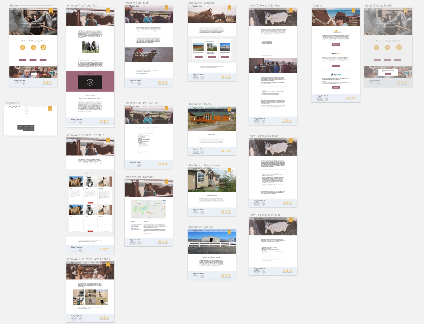 Happy Dog Ranch (HDR) is a local organization here in the foothills of the Rockies. I took their existing website and redesigned it so their story could be told in a more impactful way. By flattening out the site, I designed a new UI/UX which helps users navigate in a more intuitive way. I also redesigned the site's information architecture. Important details are nestled away on subpages, so I collected, organized, and displayed them so visitors have everything at their fingertips. Instead of being distracted by navigating through the considerable number of pages, the new site helps put focus back on the amazing impact they have in our community.
